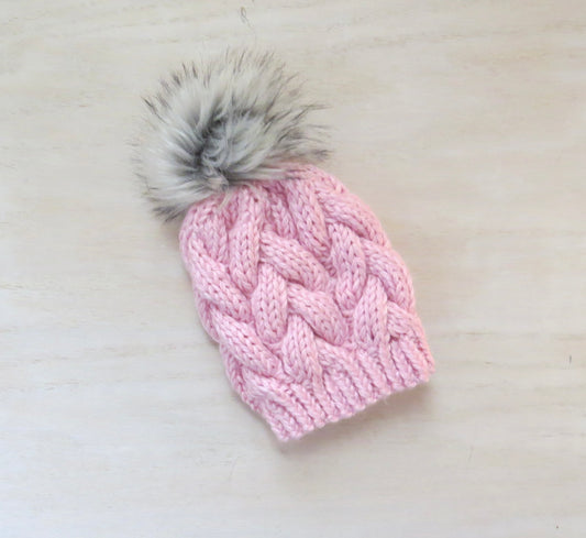 Baby Braided Cable Beanie w/ Faux Fur Pom Multiple Colors || Ready to Ship