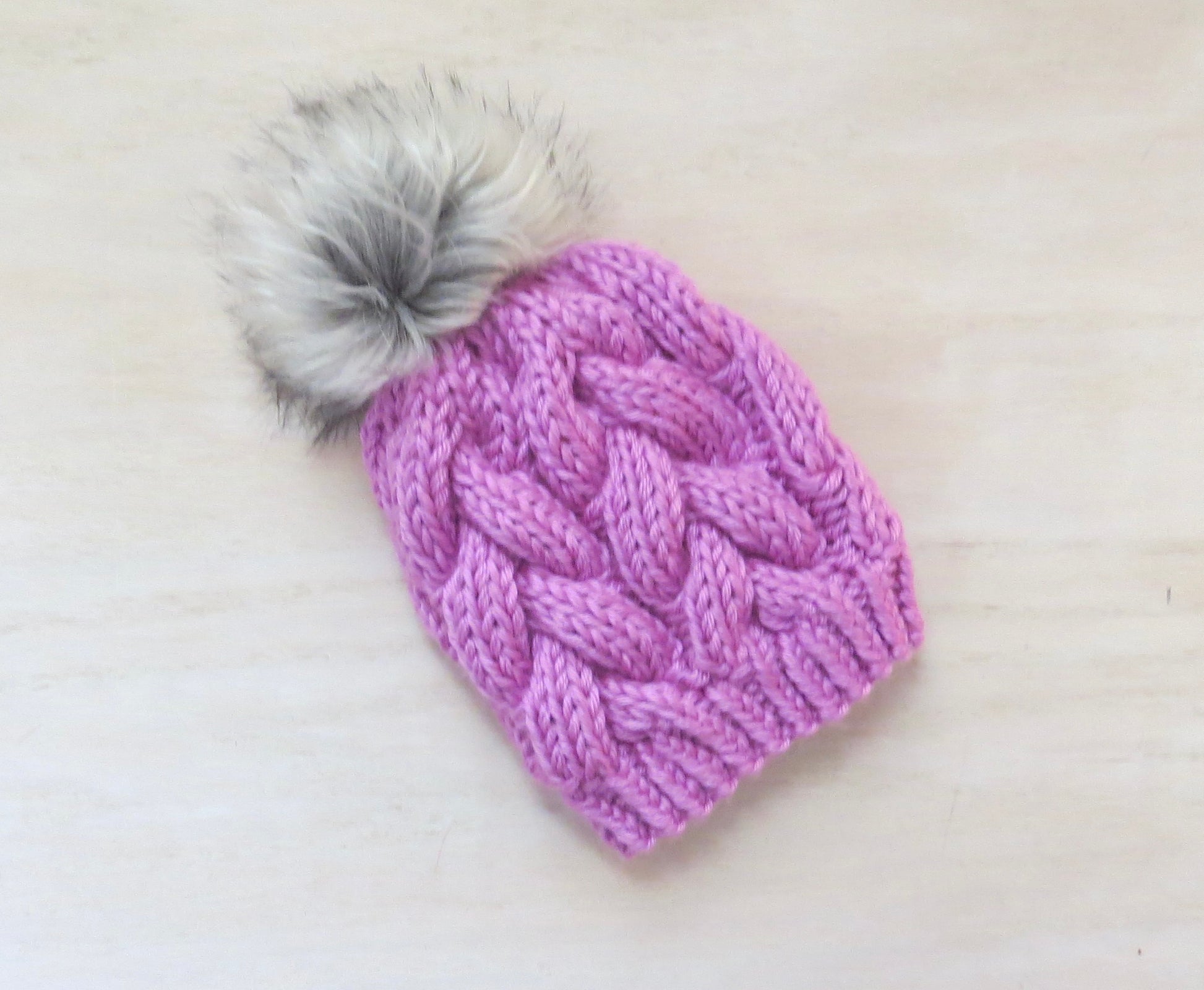 Baby Braided Cable Beanie w/ Faux Fur Pom Multiple Colors || Ready to Ship